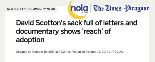 David Scotton is a college student raised in Louisiana who finally decides he is ready to meet his birth parents.